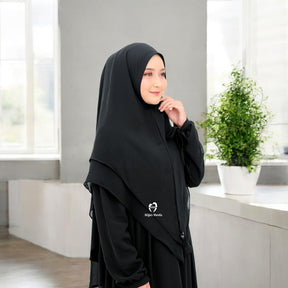 Ontdek de betoverende charme van de Khimar Rainey! Deze prachtige islamitische hoofddoek is gemaakt van dubbellaags chiffon, wat zorgt voor een elegante en vloeiende uitstraling. De zachte en lichte stof voelt heerlijk aan op de huid en biedt een gevoel van comfort.