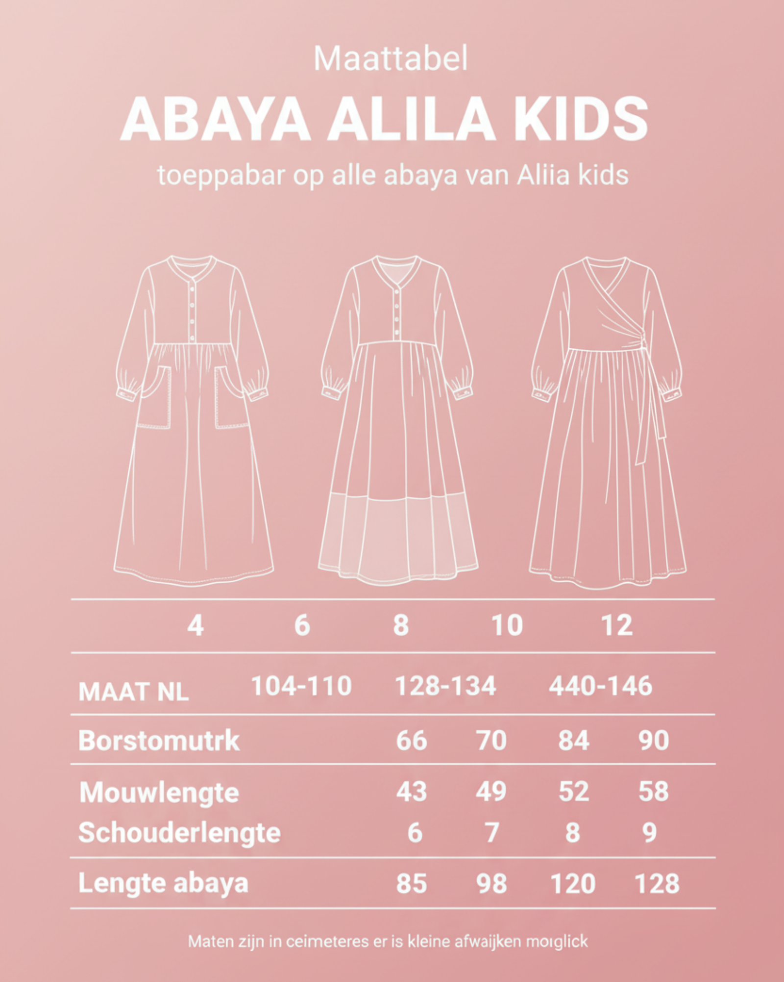 - Maten: 8, 10 en 12