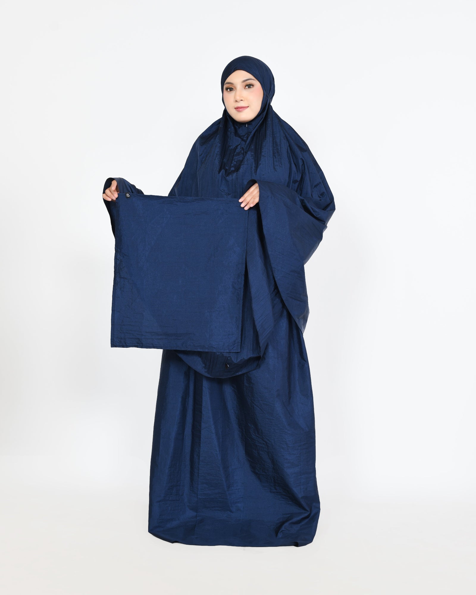 Onze Easy Travel gebedskleding is speciaal ontworpen voor de actieve moslima die altijd en overal haar gebeden wil kunnen verrichten. Deze praktische set is gemaakt van hoogwaardig parasutstof - een lichtgewicht, ademend materiaal dat perfect is voor thuis én onderweg.