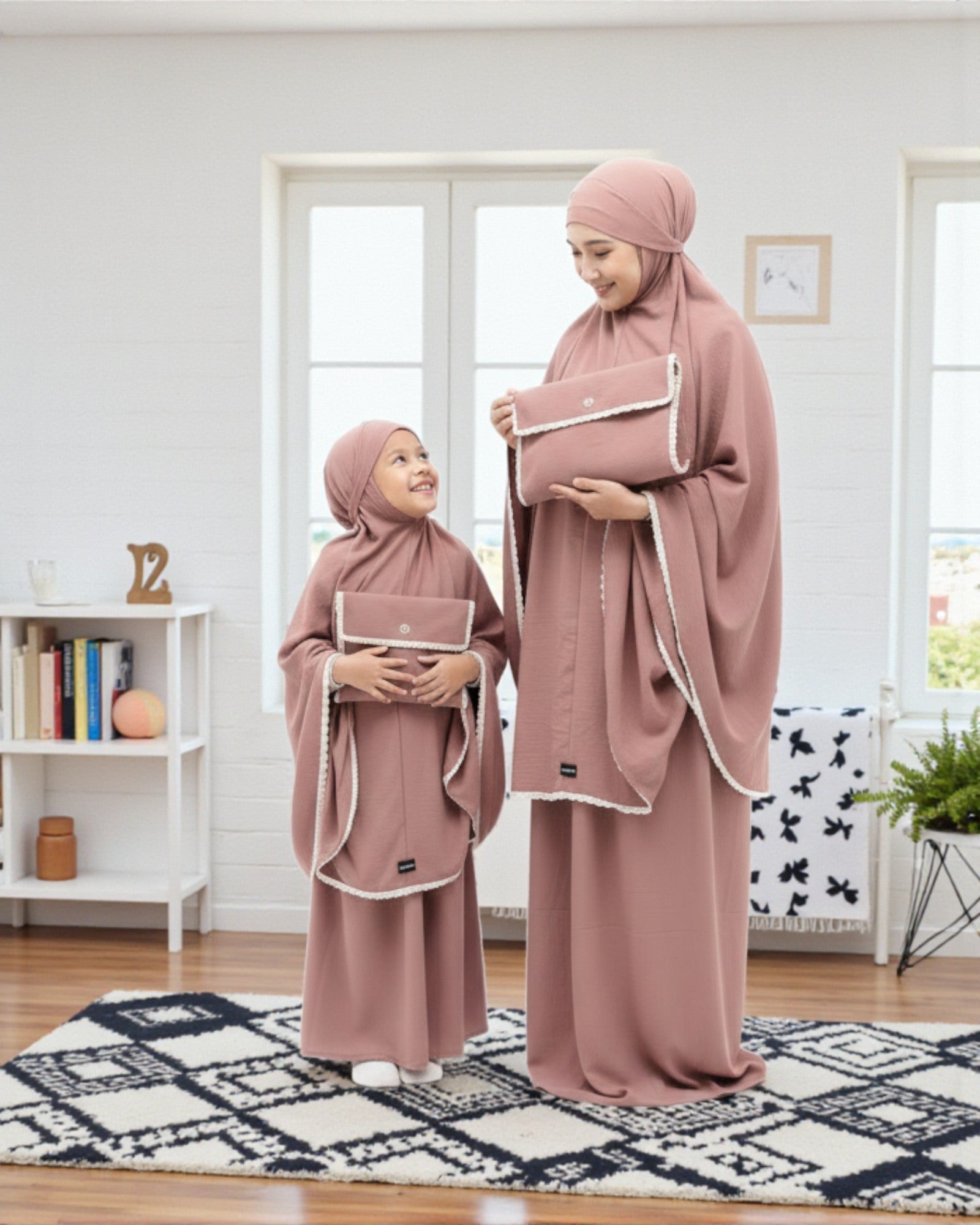 Deze mooie gebedskleding is ook verkrijgbaar in kindermaten, zodat moeder en dochter samen stijlvol en sereen kunnen bidden.