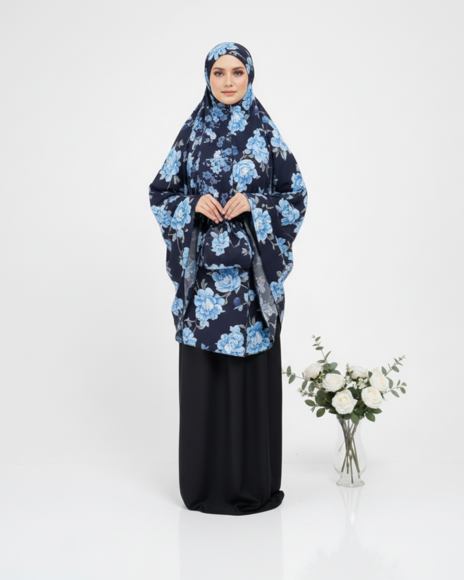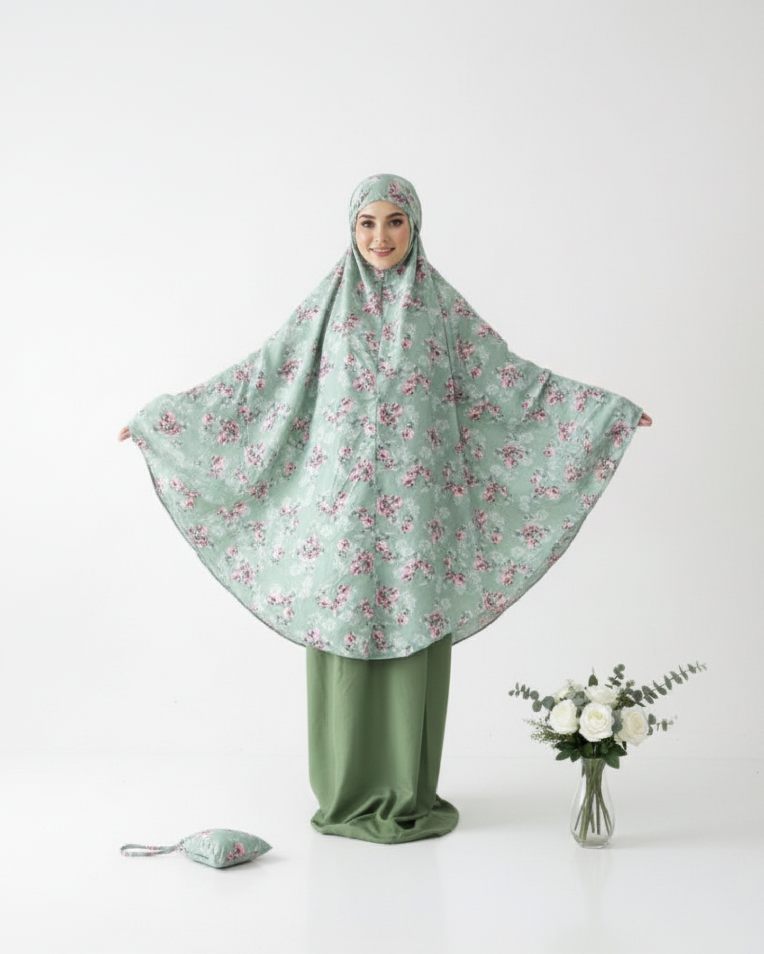 Inclusive een praktisch tasje in matchende kleur, zodat je jouw mukena netjes en hygiënisch kunt bewaren en transporteren.